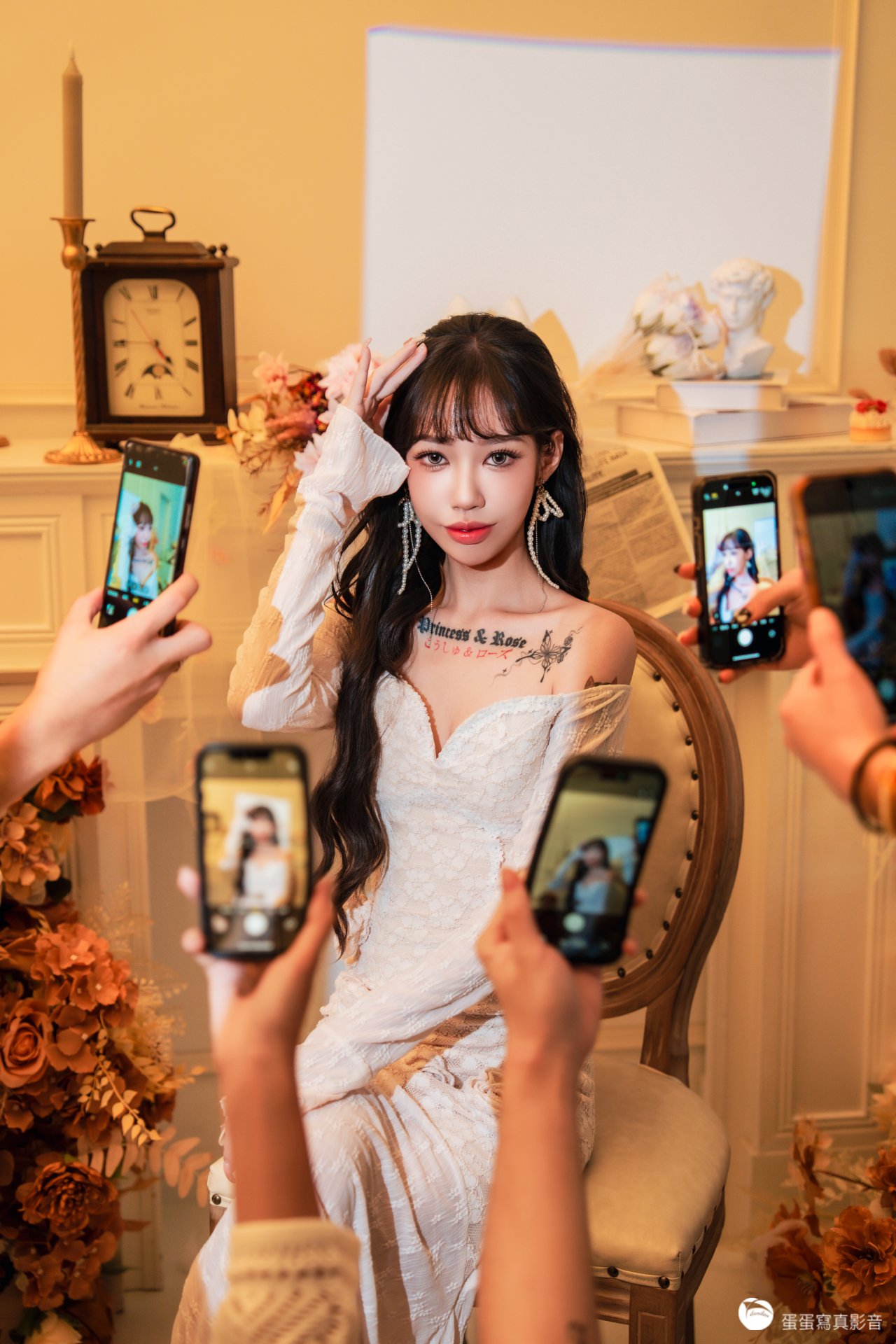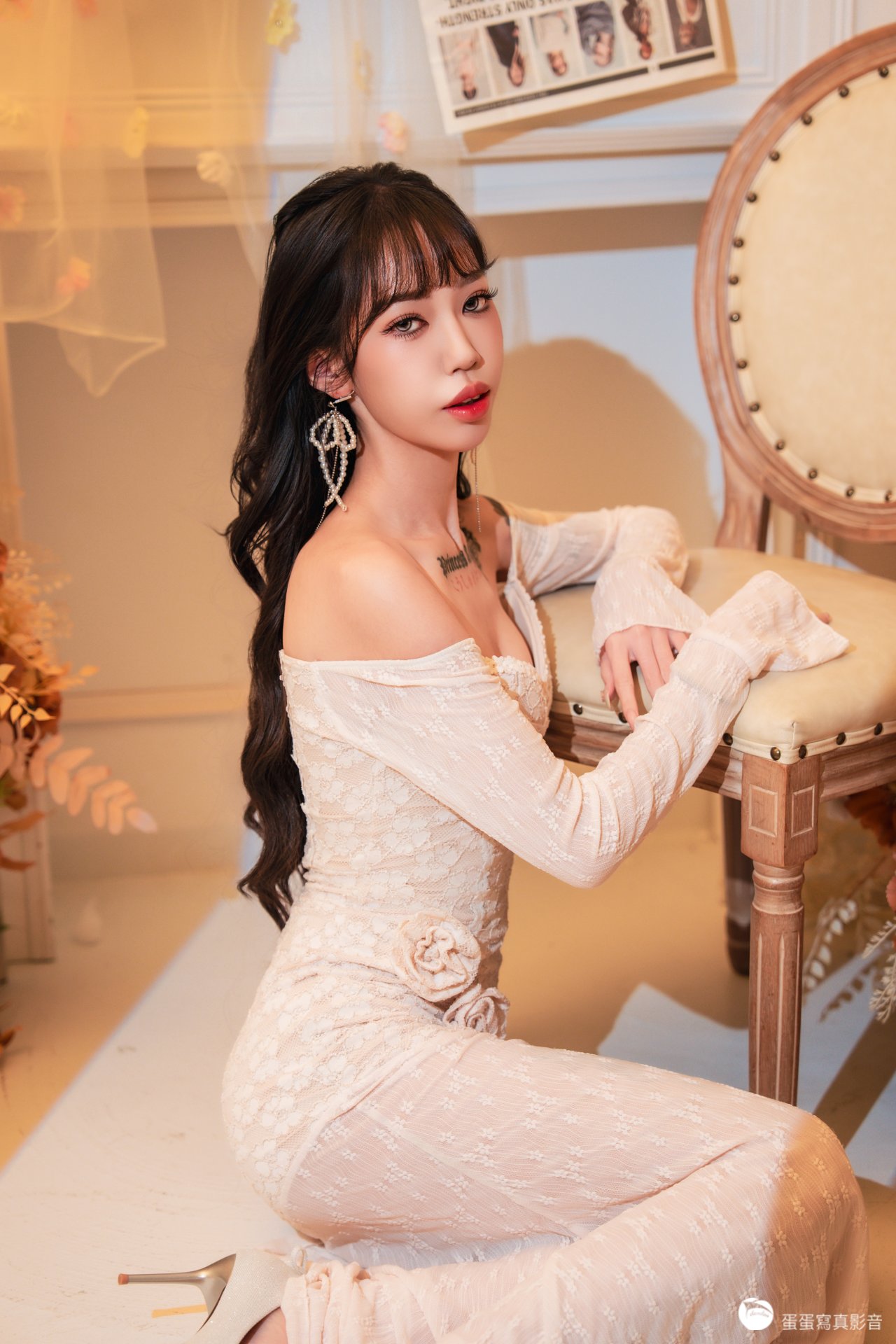 「不是所有千金風,都能拍出「又貴又欲」的鬆弛感——模特 艾嫣 自帶的「甜欲大小姐」氣質,有著清純的臉蛋韓星的風格,搭配蕾絲裙+暖調私宅佈景: